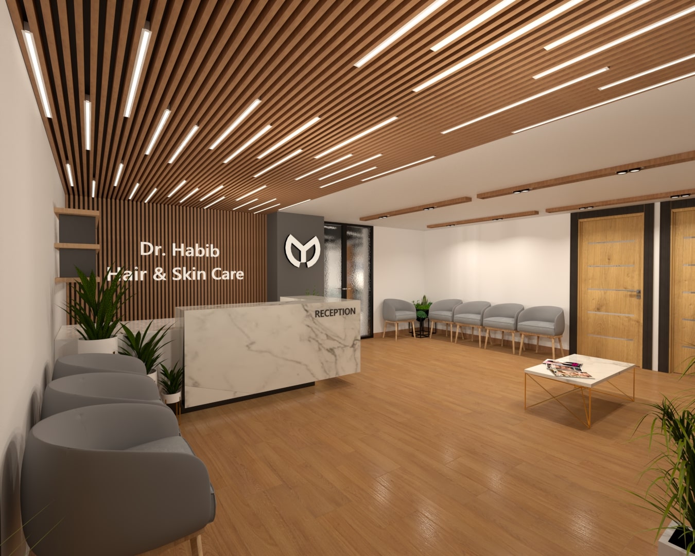 Dr Habib's, Hair Transplant ClinicLocation: Peshawar, PakistanDesign Team: ENSO DesignConcept:Area in size: 000 sq.ftAreas:Reception, Waiting, Office, 3 Surgery Rooms, Lobby Share
